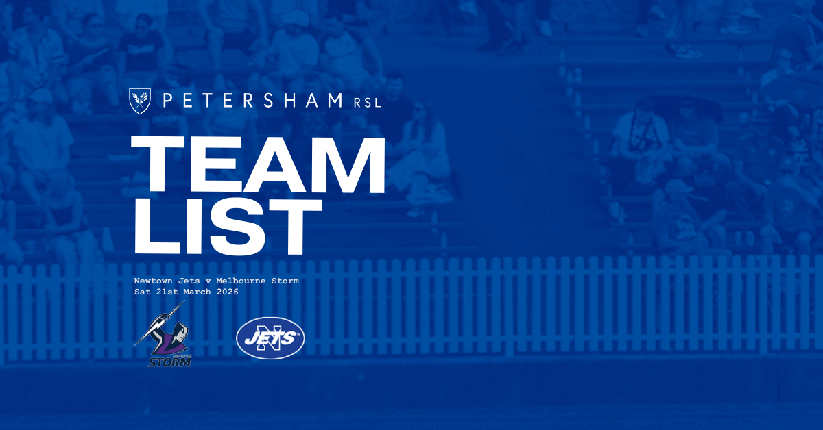 This week’s Tuesday Team List is brought to you by Petersham RSL.